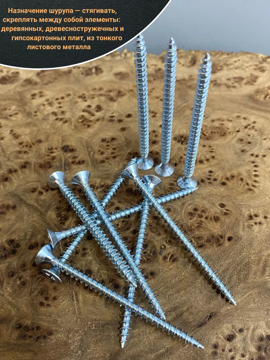 Шуруп — это металлический крепеж, представляющий собой стержень с головкой и острым наконечником. Универсальность проявляется в конструкции и области применения. Назначение шурупа — стягивать, скреплять между собой элементы: деревянных, древесностружечных и гипсокартонных плит, из тонкого листового металла.