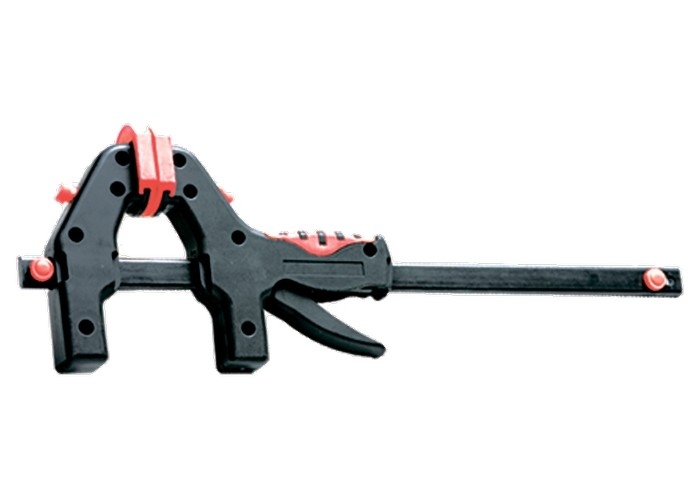 Универсальная F-образная быстрозажимная струбцина Matrix 20546, 600 х 915 х 90 мм, в пластиковом корпусе, используется в столярном деле. Позволяет быстро фиксировать заготовки с целью их соединения или обработки — склеивания, сверления, шлифовки, пиления и других видов работ. Подвижная губка перемещается вдоль штанги при помощи пластинчатого механизма, а фиксатор препятствует разжиманию струбцины. Массивная конструкция обеспечивает надежность инструмента. Направляющая изготовлена из стали и устойчива к нагрузкам, поэтому выдерживает значительные усилия при сжатии предметов.Рабочие элементы выполнены из ударопрочного пластика и обладают высокой механической стойкостью, что увеличивает срок службы инструмента.Защитные накладки на губках предохраняют зажимаемые детали от повреждений. Опорную губку можно установить на противоположный конец штанги, после чего использовать струбцину на разжим.