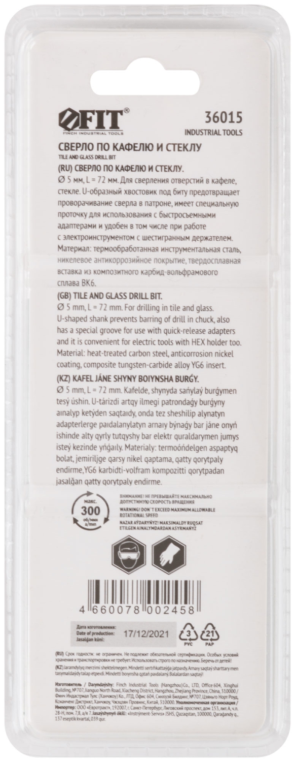 | Сверло по кафелю шестигранный U-хвостовик под биту, 4 мм | 36014 | 1 шт. |
