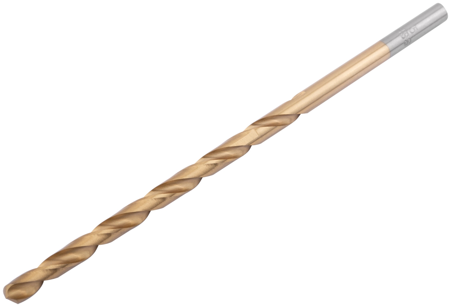 Сверло по металлу удлиненное Цилиндрический хвостовик. Вышлифованный профиль. Класс точности А1. Угол заточки 135 градусов. Материал: быстрорежущая (HSS) сталь Р9М3 c титановым покрытием. Упаковка: картонный конверт.