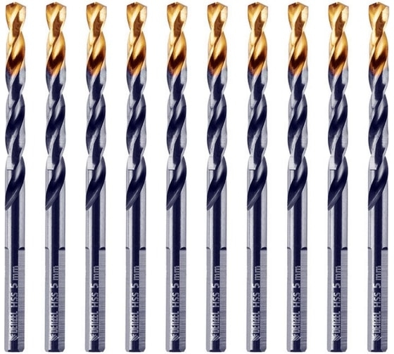 Сверло по металлу Denzel Golden Tip из стали HSS-TiN, 10 шт. в упаковке, используется для получения отверстий в стальных заготовках. Оснастка вышлифована на современном оборудовании и имеет класс точности A1, что позволяет получить отверстия высокого качества. Набор применяется во время слесарных работ. Прочность — сверла из быстрорежущей стали устойчивы к перегреву и выдерживают высокие нагрузки.