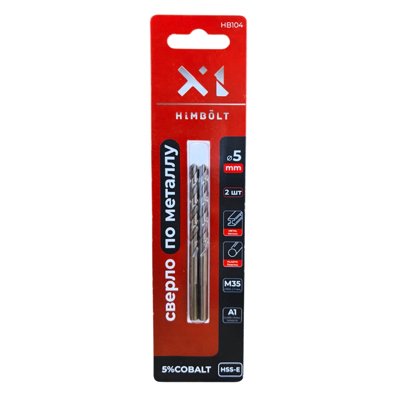 Сверло по металлу с кобальтом 5% P6M5K5 5,0 мм HIMBOLT 2 шт.блистер