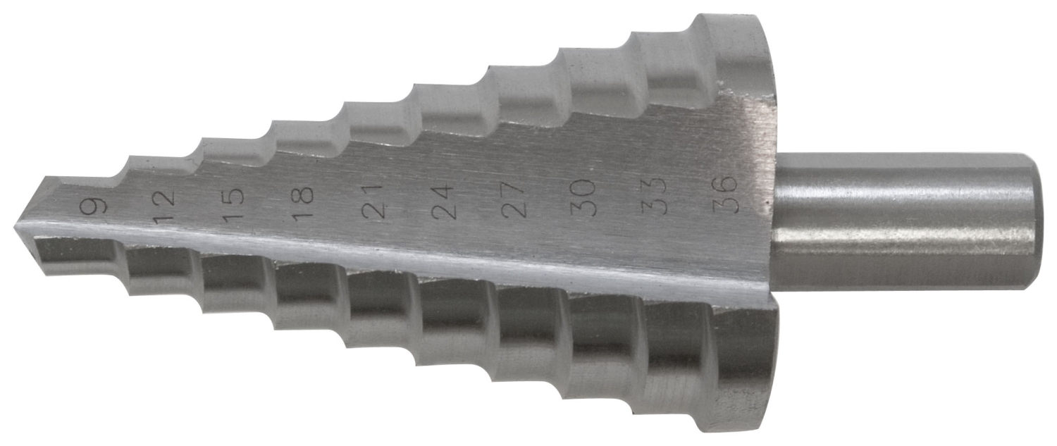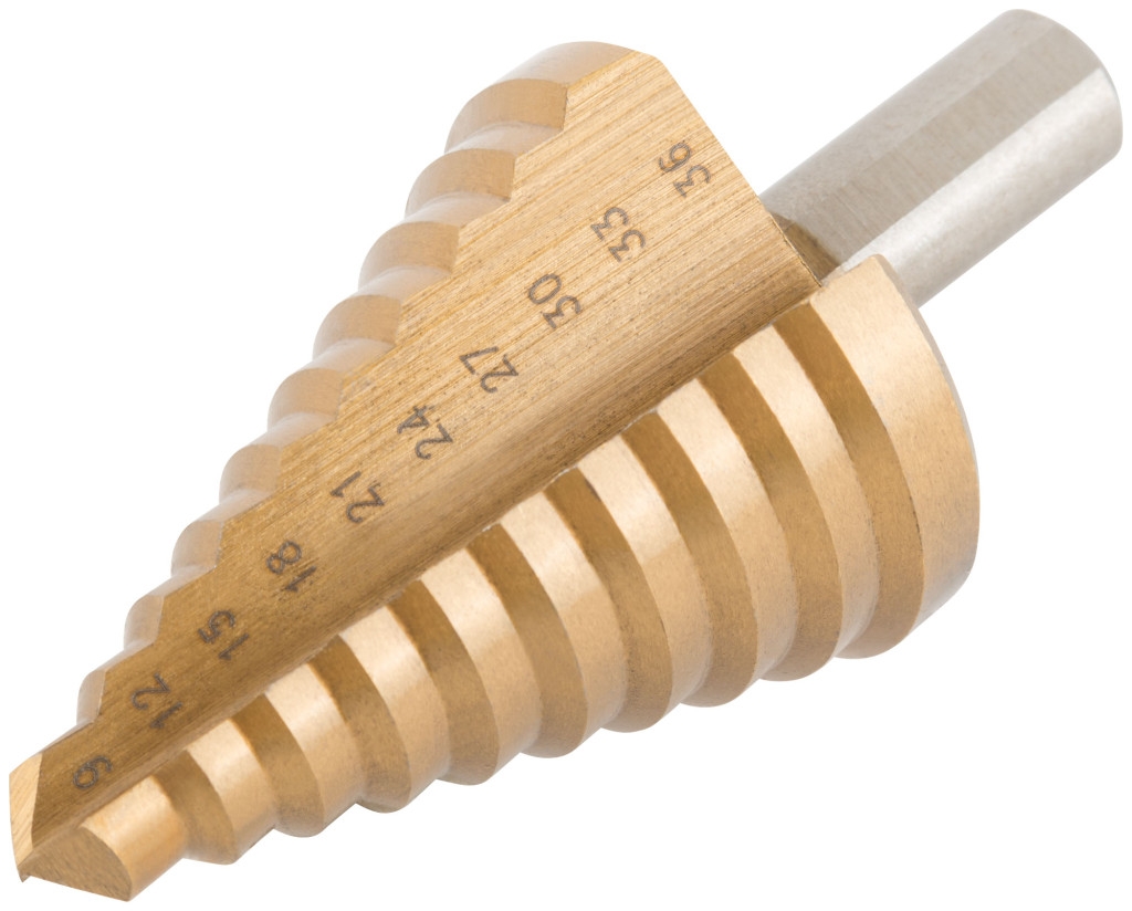 Сверло ступенчатое по металлу, HSS, 9 ступеней, 9-36 мм