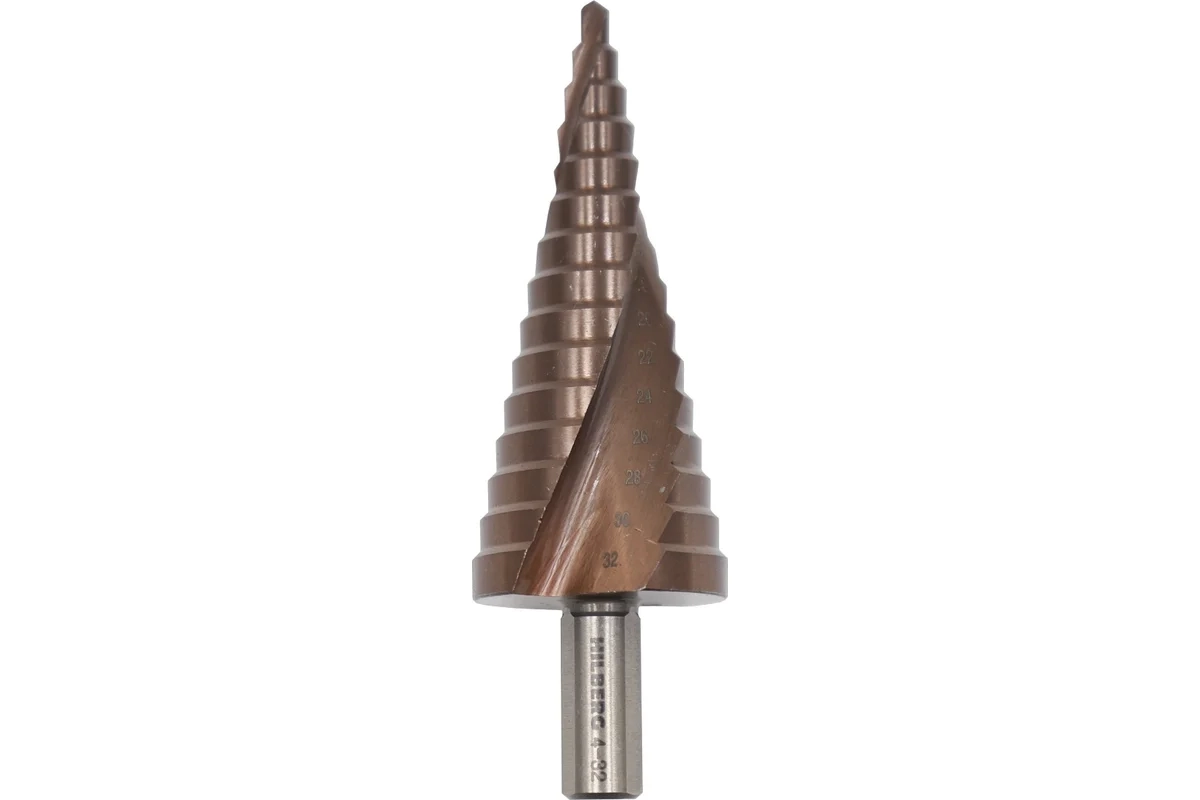 Сверло ступенчатое по металлу, HSS-COBALT, 15 ступеней, 4-32 мм P6M5 Hilberg