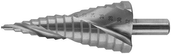 Сверло ступенчатое по металлу, HSS, спирал.проф.,15 ступеней, 4-32 мм