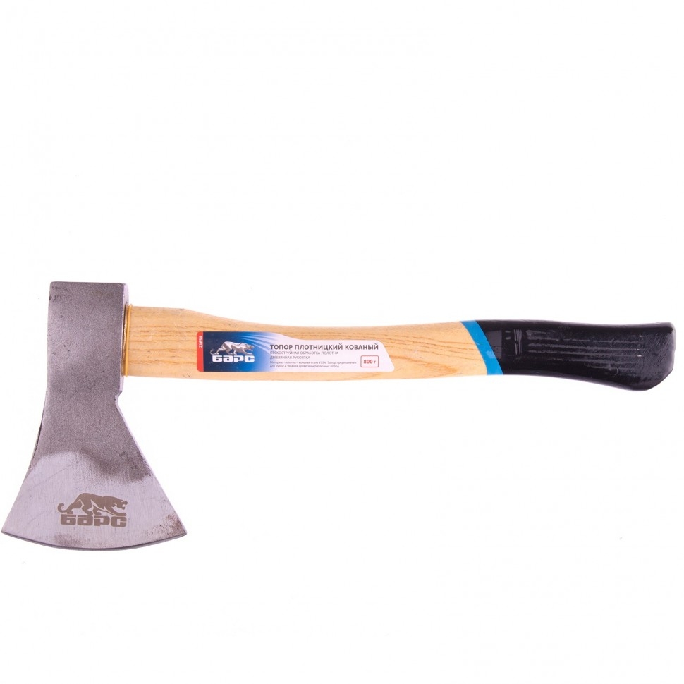 Кованый плотницкий топор Барс 21654 с рабочей частью весом 800 г имеет деревянную эргономичную рукоятку и полотно с пескоструйным покрытием, что гарантирует высокую эффективность и безопасность работы. Он используется при рубке и тесании древесины любых пород. Высокое качество — голова топора выполнена из углеродистой стали У13А.