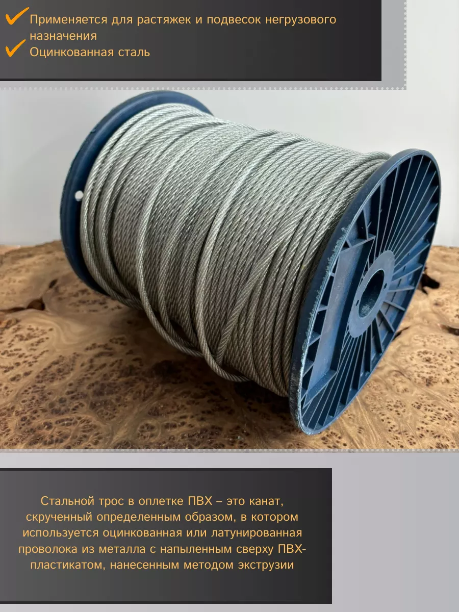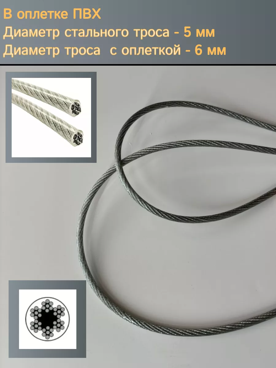Трос стальной для растяжки 5/6мм 100м в оплетке ПВХ DIN3055