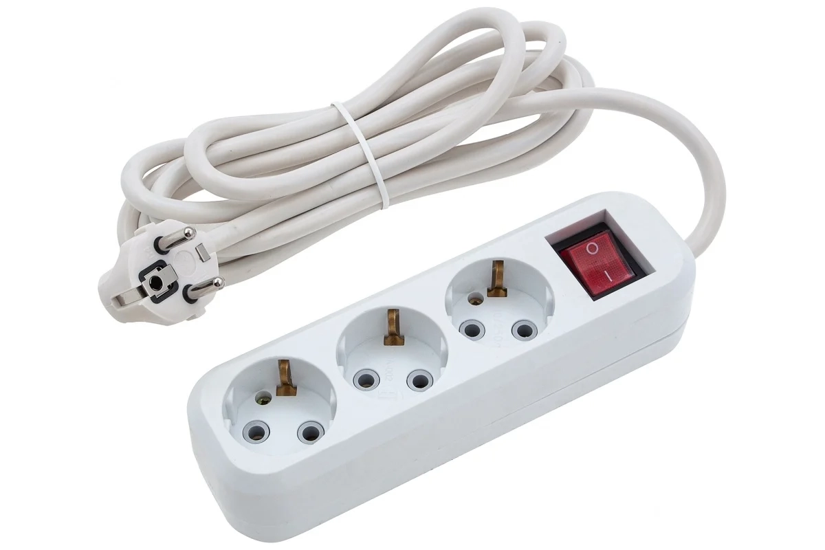 Удлинитель эл.бытовой с заземлением и выключ., 3 м, 10А, 3 розетки, тип УХз10 Сибртех