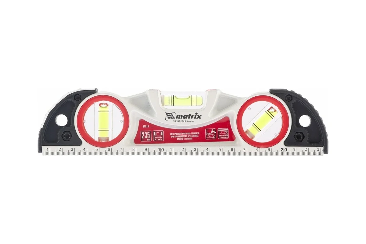 Уровень алюминиевый литой фрезерованный, две ударные площадки 3 глазка 235 мм Matrix