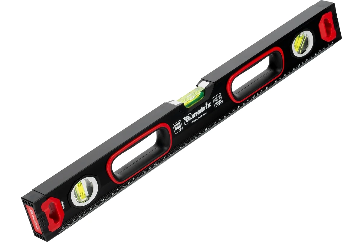 Уровень алюминиевый усиленный фрезерованный 3 глазка 2комп.рук. 600 мм Matrix