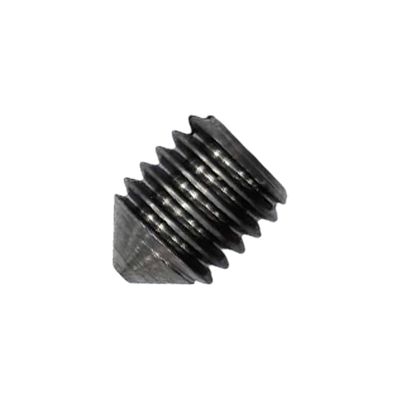 Стопорный винт с коническим концом и прямым шлицем предназначен для создания соединений, которые не работают на растяжение. Он широко используется в машиностроении и приборостроении для фиксации шестерёнок, подшипников, колец, втулок на валах.