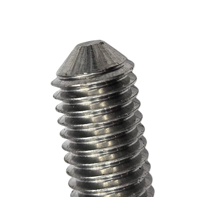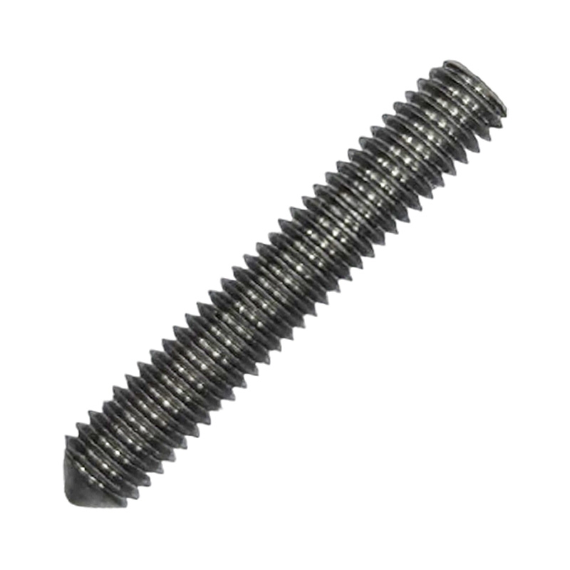 DIN 553 винт установочный стопорный, с прямым шлицем и коническим острым концом, резьба сплошная.