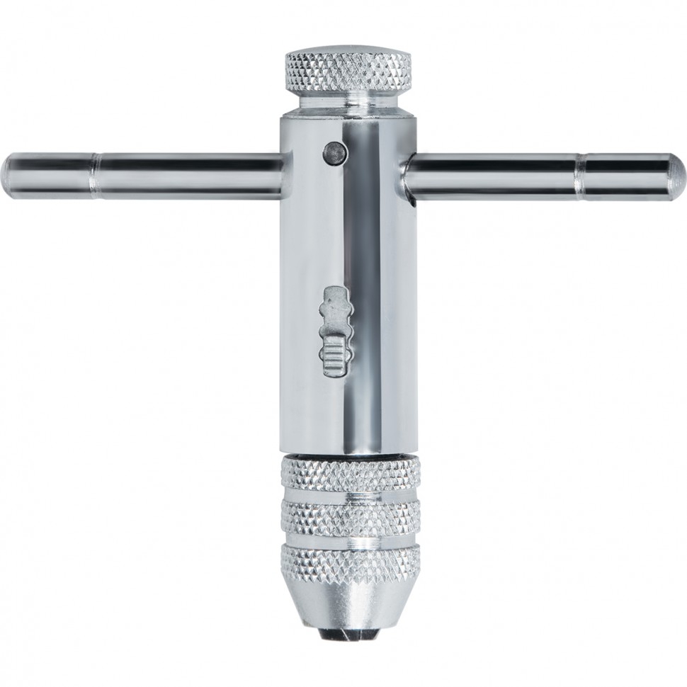 Хромированный вороток для метчиков Matrix 76907, М5-М12, с трещоткой, предназначен для ручного нарезания внутренней резьбы в отверстиях и цилиндрических деталях. Подходит для метчиков с резьбой М5, М6, М8, М10 и М12. Вороток используется при ремонте резьбовых соединений и пригодится в мастерской или гараже. Вороток изготовлен из высокопрочной инструментальной стали, а значит, выдерживает значительные нагрузки. Благодаря хромированному покрытию инструмент не подвержен образованию коррозии. Наличие трещоточного механизма и функции реверса облегчает нарезание резьбы и извлечение метчика. Возможность изменения длины плеча позволяет регулировать величину крутящего момента, а также работать в труднодоступных местах.