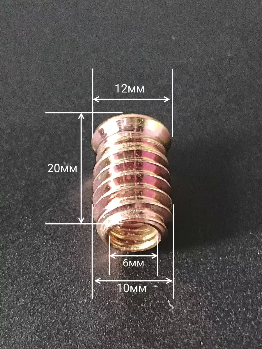 Втулка резьбовая М6х10х20 с потайным фланцем ЖЦ, 10 шт.