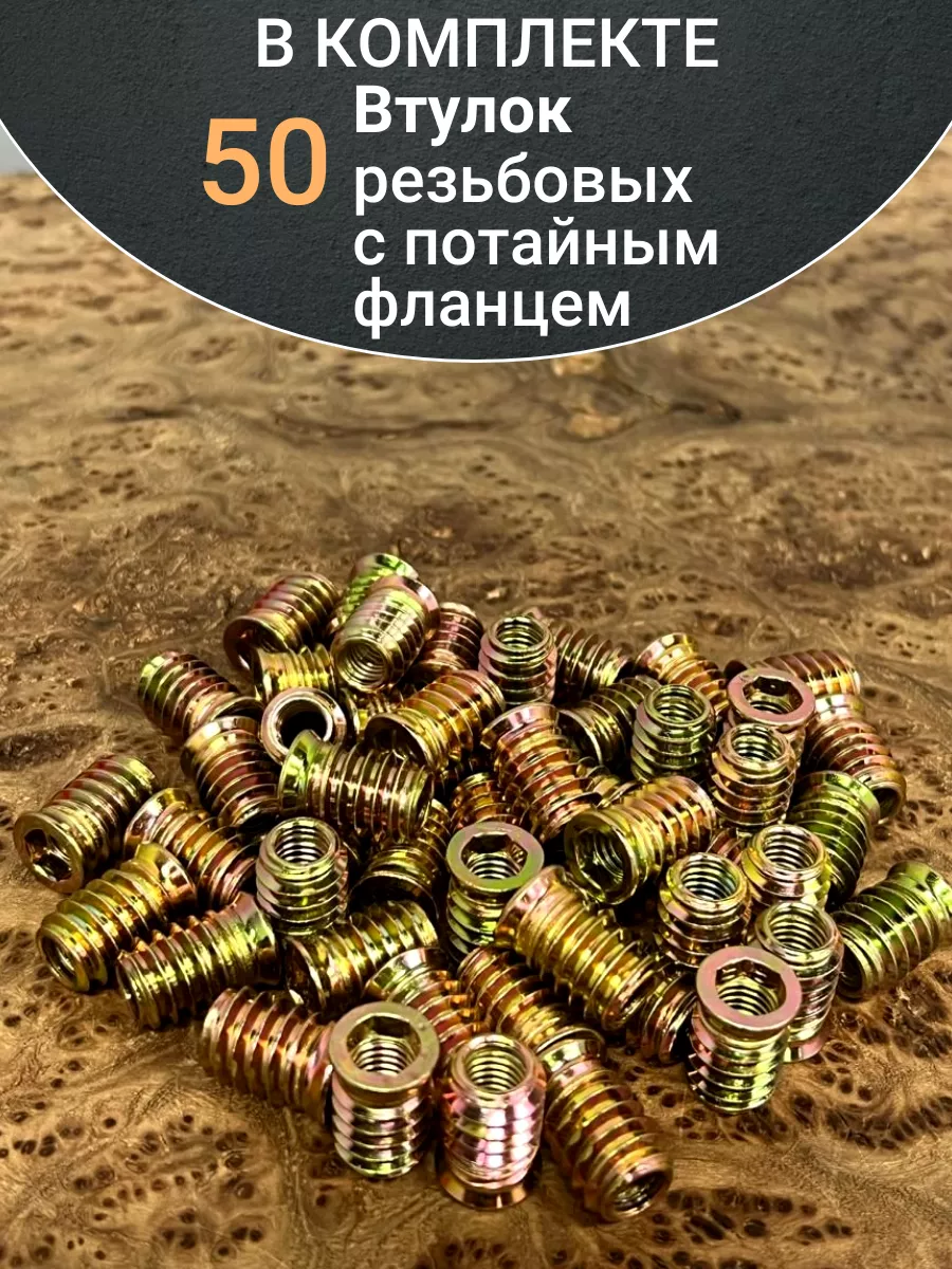 Втулка резьбовая М6х10х25 с потайным фланцем ЖЦ, 50 шт.