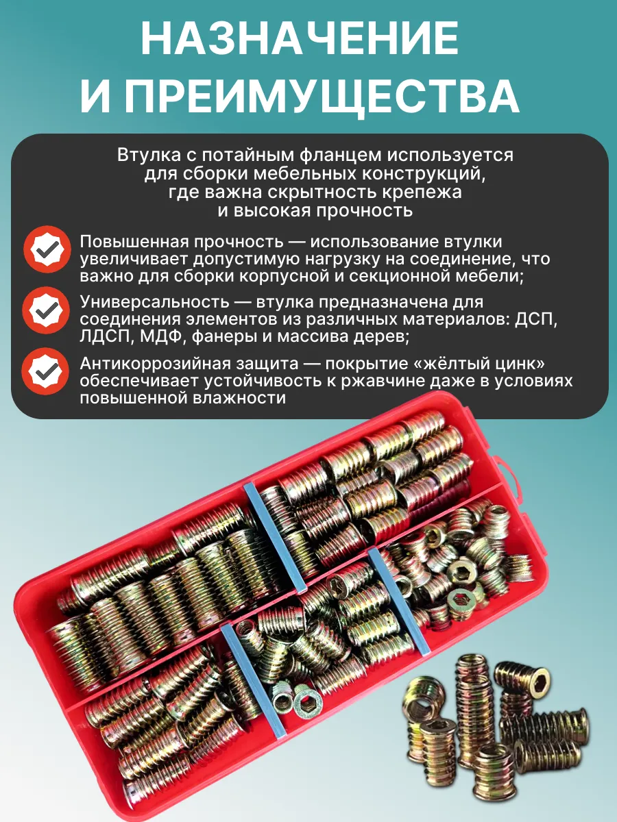 Втулки с потайным фланцем М6,М8 в органайзере НАБОР 1