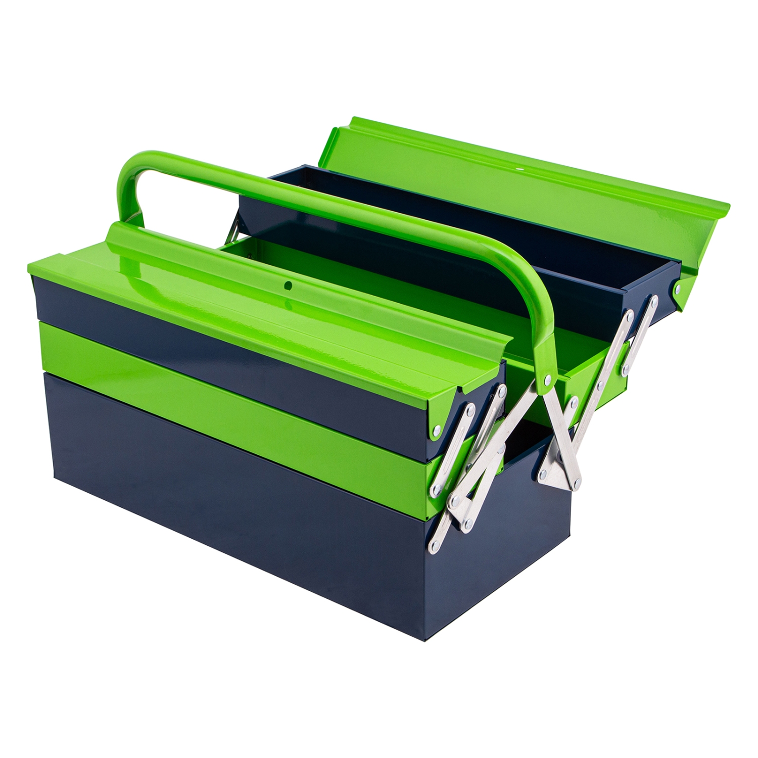 Удобное использование — ящик легко раскладывается, ручка поворачивается и не мешает размещать или извлекать инструменты.